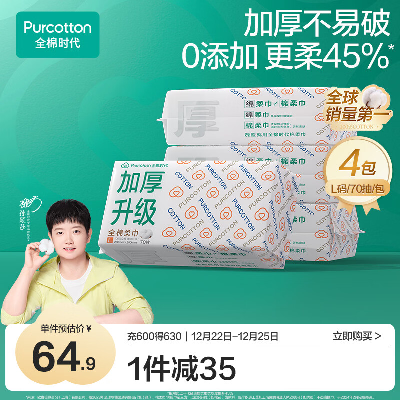 全棉时代【孙颖莎同款】一次性洗脸巾京东自营棉柔巾加厚60gsm20*20cm