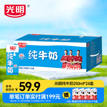 光明纯牛奶营养早餐奶浓醇营养餐伴侣家庭量贩整箱年货礼盒 苗条装纯牛奶250*24【5月产】 原味