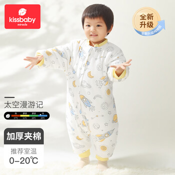 Kissbaby Miracle吸湿排汗婴儿睡袋秋冬宝宝恒温分腿睡袋轻柔纯棉防踢被睡袋 太空漫游记-加厚夹棉-纯棉面料 M码(建议身高80-95cm使用)