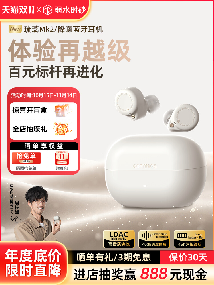 弱水时砂琉璃MK2真无线降噪蓝牙耳机2025新款超长续航入耳式耳机