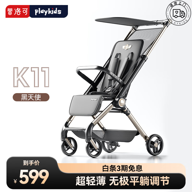 普洛可(PLAYKIDS)K11旅行遛娃神器轻便可折叠便携婴儿推车可坐可躺儿童遛娃口袋车 黑天使