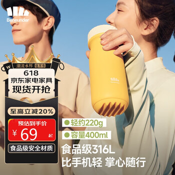 beneunder保温杯大容量保冷咖啡水杯子不锈钢生日礼物LC131柔叶黄父亲节