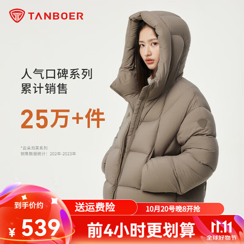 坦博尔连帽羽绒服女泡芙短款韩版面包服小个子秋冬外套TBF530360D 松木棕 XS (155)