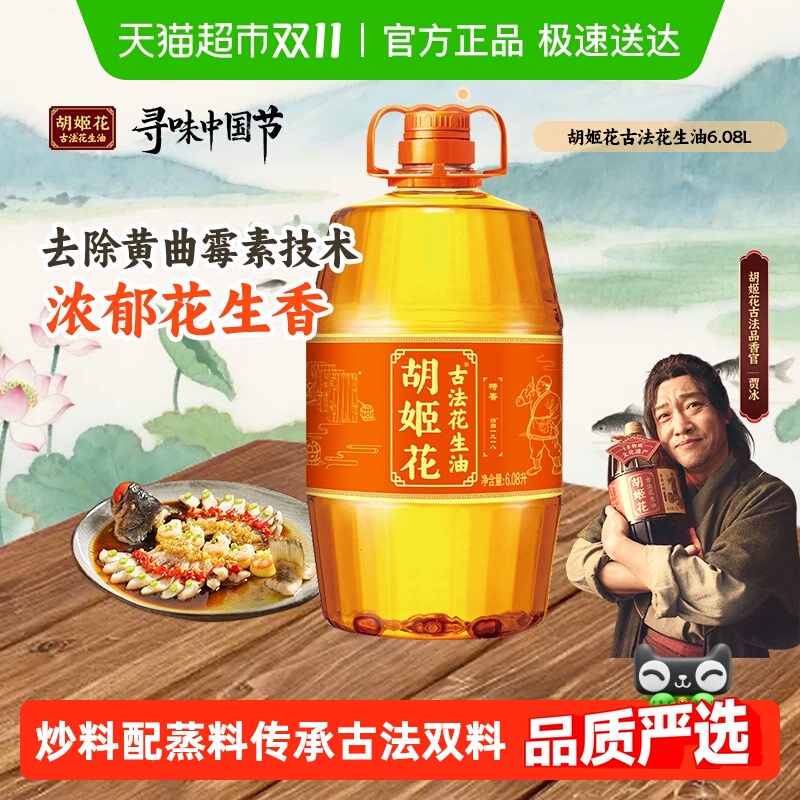 胡姬花古法花生油6.08L*1桶传统工艺压榨