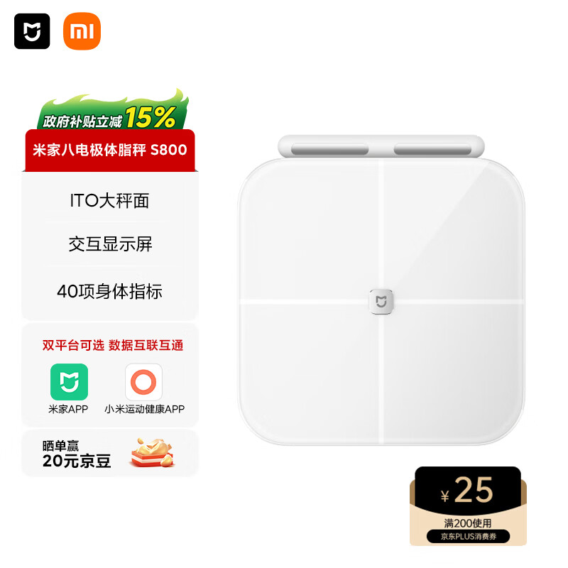 米家(MIJIA)小米智能八电极体脂秤S800 体重管理家用体重秤电子秤双频精准检测 支持蓝牙连接