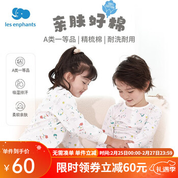 丽婴房(Les enphants)丽婴房儿童内衣套装纯棉男女宝宝内衣套装春秋薄款中大童2023新品 两粒扣套装 80cm/1岁