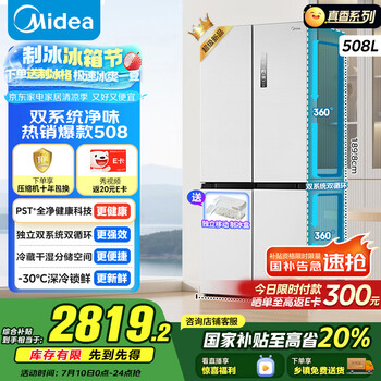 美的(Midea)508升十字四开门一级能效双系统双循环除菌净味国家补贴20%家用冰箱大容量BCD-508WSPZM(E)海贝白
