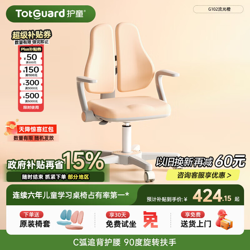 护童(Totguard)儿童学习椅可调节升降学生追背正姿座椅 G102流光橙