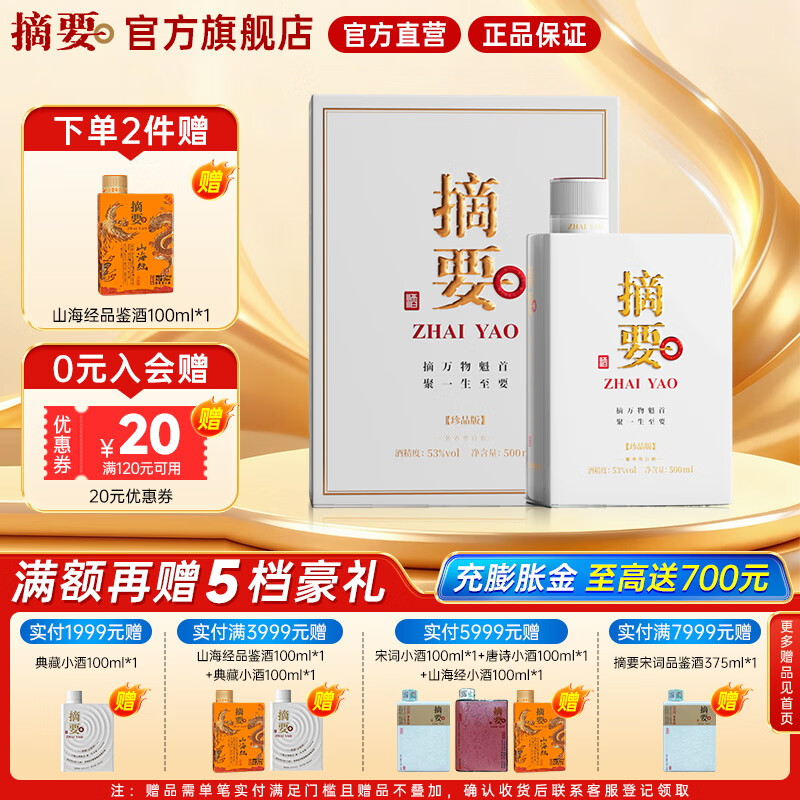 摘要酒 珍品版(三代) 贵州金沙回沙 酱香型白酒 纯粮高端酱酒 53度 500mL 1瓶 摘要珍品版三代