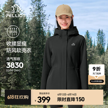 伯希和(Pelliot)户外软壳衣女外套防风加绒保暖夹克休闲运动防泼水收腰显瘦登山服 曜石黑 XL