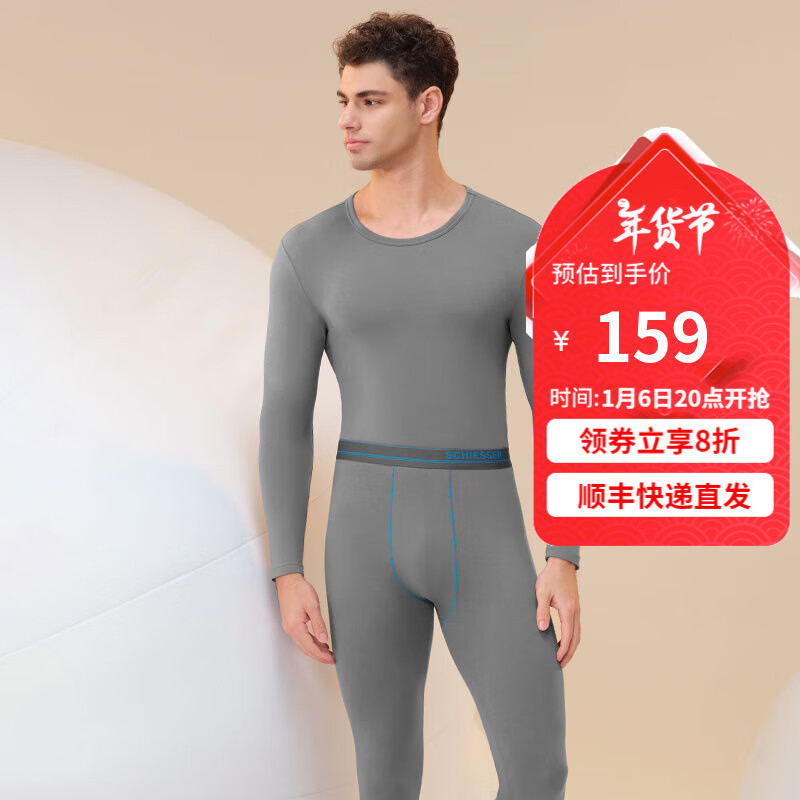 舒雅(SCHIESSER)男士舒美棉3A抗菌长袖长裤保暖秋衣秋裤套装E5/23918W E5/23923W【圆领】深灰 M 【60-70公斤】