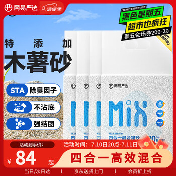 网易严选4合1豆腐膨润土植物混合猫砂强结团不沾底除臭木薯猫砂 2.5kg*4包