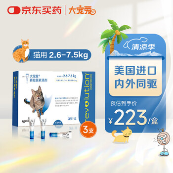大宠爱 猫驱虫药 体内外同驱耳螨虱子跳蚤虫 2.6-7.5kg成猫 3支装