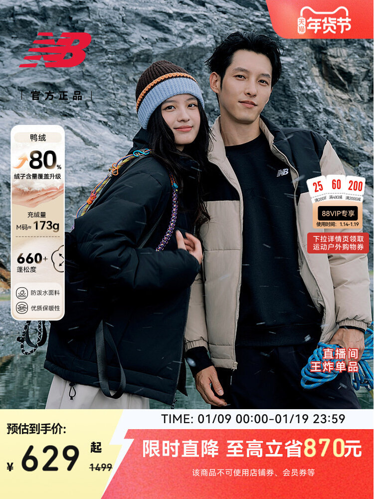 New Balance NB官方正品男女情侣款防泼水户外保暖羽绒服AMJ53362
