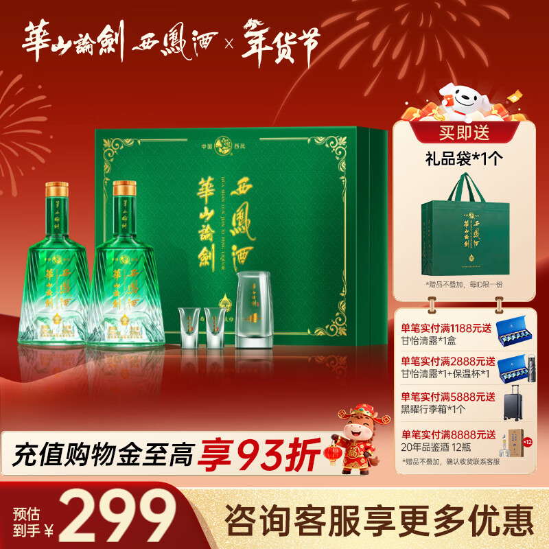 西凤华山论剑名酒经典52度饮水思源双瓶礼盒送礼节日白酒 52度 500mL 2瓶