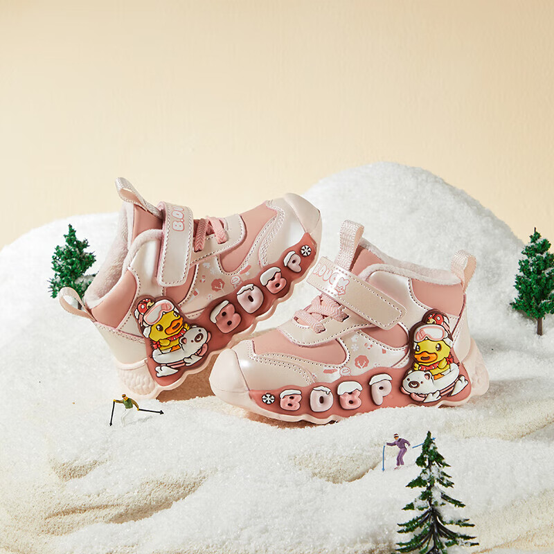 B.Duck【5折】B.Duck小黄鸭童鞋女童棉鞋冬季新款男童保暖运动鞋二棉宝 粉色 22 码 适合脚长12.4-12.9cm