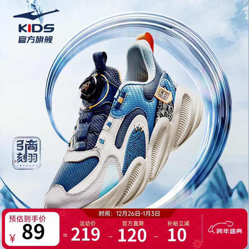 鸿星尔克童鞋男童运动鞋冬季透气女童休闲跑步鞋儿童耐磨防滑跑鞋 藏深蓝/云雾灰 -偏小1码 38