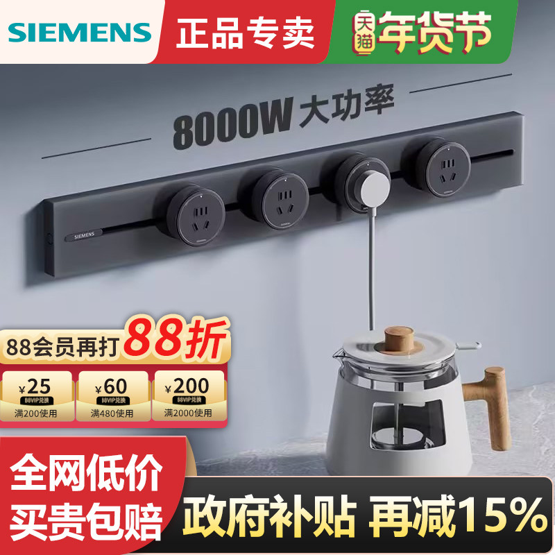 西门子S8轨道插座8000w家用明装可移动壁挂式滑轨电力轨道插座