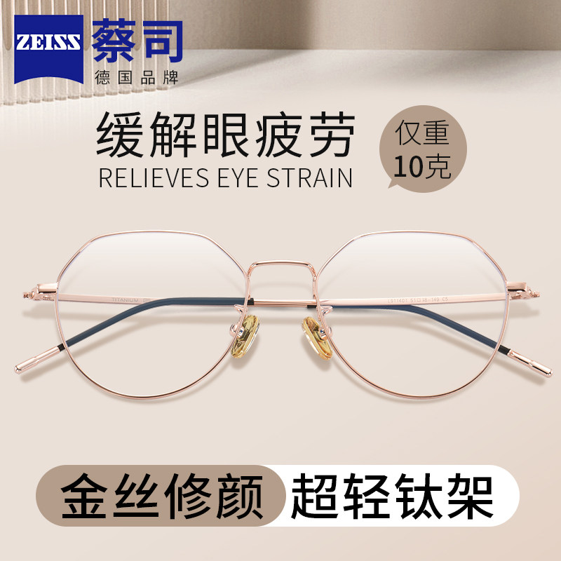 蔡司镜片眼镜近视女款多边形超轻钛可配度数防蓝光配镜片男眼睛框