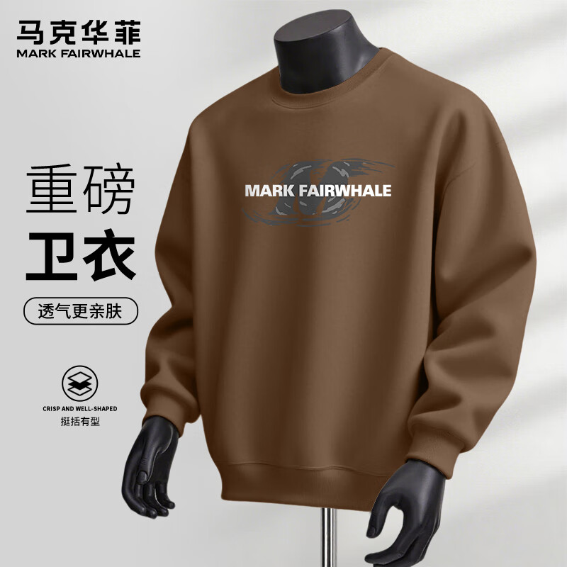 马克华菲春秋季重磅圆领卫衣男女同款宽松街头休闲慵懒风日常通勤百搭上衣 【重磅棉】- 咖#JMK漩涡M M