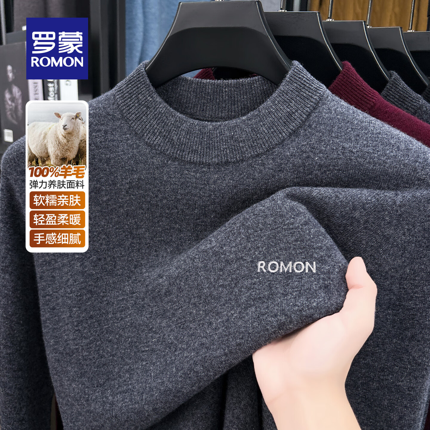 罗蒙加厚羊毛衫男士毛衫秋冬款休闲百搭纯色绵羊毛打底衫保暖毛衣上衣 5M616852浅灰 【100%纯羊毛】 L 175 (适合140-155斤)