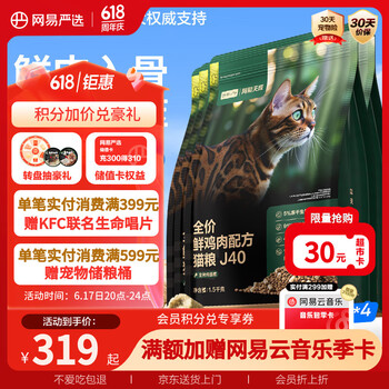 网易严选双拼生骨肉主食冻干全价成猫幼猫猫粮J40鸡肉口味1.5kg*4