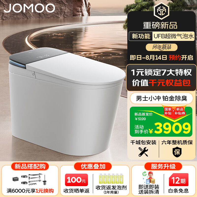 九牧(JOMOO)白魔方无水压限制旋风魔力泡脚感冲水轻智能马桶SQ8450-S0-CJM400