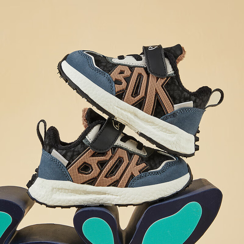 B.Duck【5折】B.Duck小黄鸭童鞋冬季新款二棉男童机能软底面包鞋女宝宝 黑蓝 22 码 脚长12.4-12.9cm