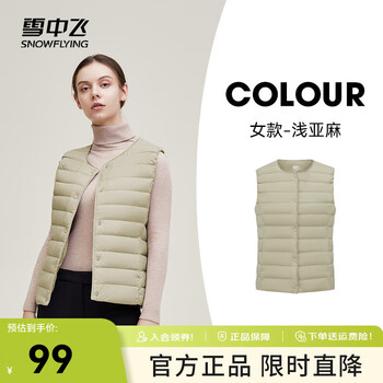 雪中飞经典新款基础舒适轻薄羽绒便捷短款保暖羽绒小马甲轻盈便携舒适 浅亚麻|7100-女 XL 175/96A