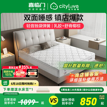 城市爱情喜临门床垫 乳胶独袋弹簧床垫双面席梦思床垫子 大白垫 1.8x2米