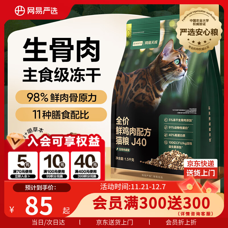 网易严选全价鲜鸡肉猫粮J40 生骨肉无谷主食冻干双拼 成幼猫护肠胃1.5kg