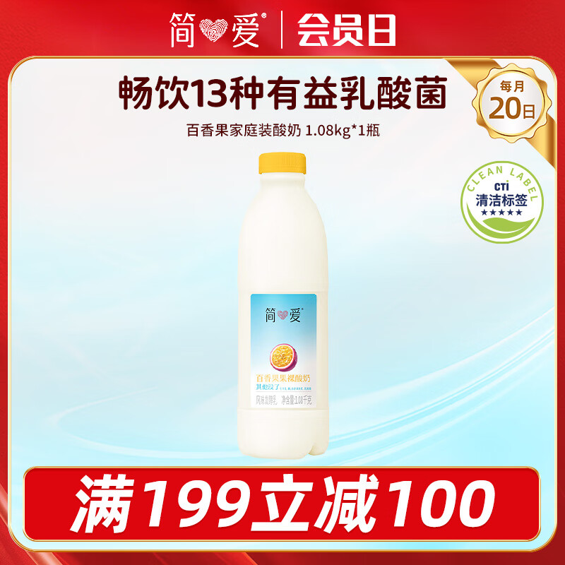 简爱百香果 酸奶1.08kg*1瓶 家庭分享装低温酸奶 风味发酵乳