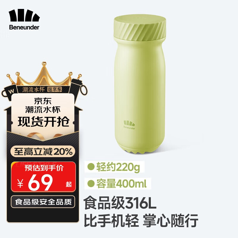 beneunder保温杯大容量保冷咖啡水杯子不锈钢生日礼物LC131甜柠黄
