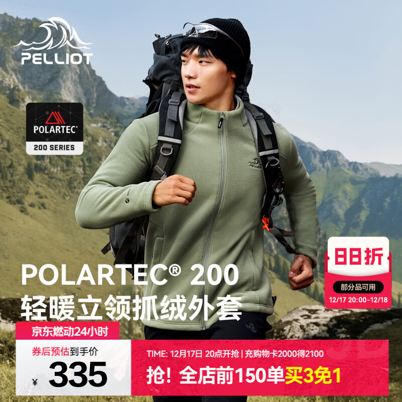 伯希和(Pelliot)Polartec200抓绒衣男女秋冬摇粒绒保暖外套冲锋衣内胆开衫夹克 【男款】岩壳绿 | 顺丰包邮 XL