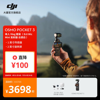 大疆 DJI Osmo Pocket 3 一英寸口袋云台相机 OP灵眸手持数码相机 旅游摄影摄像 直播vlog拍摄 Vlog 套装(Mic Mini 发射器云感白) 官方标配