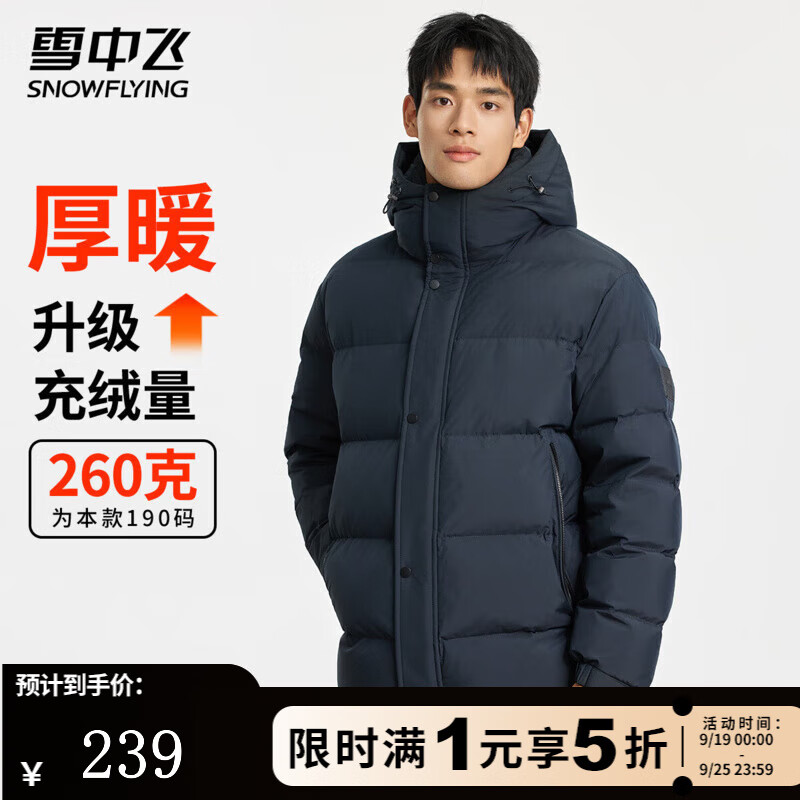 雪中飞高充绒连帽羽绒服男士冬季户外出勤休闲三层保暖防寒科技羽绒外套 藏青色 L (175)