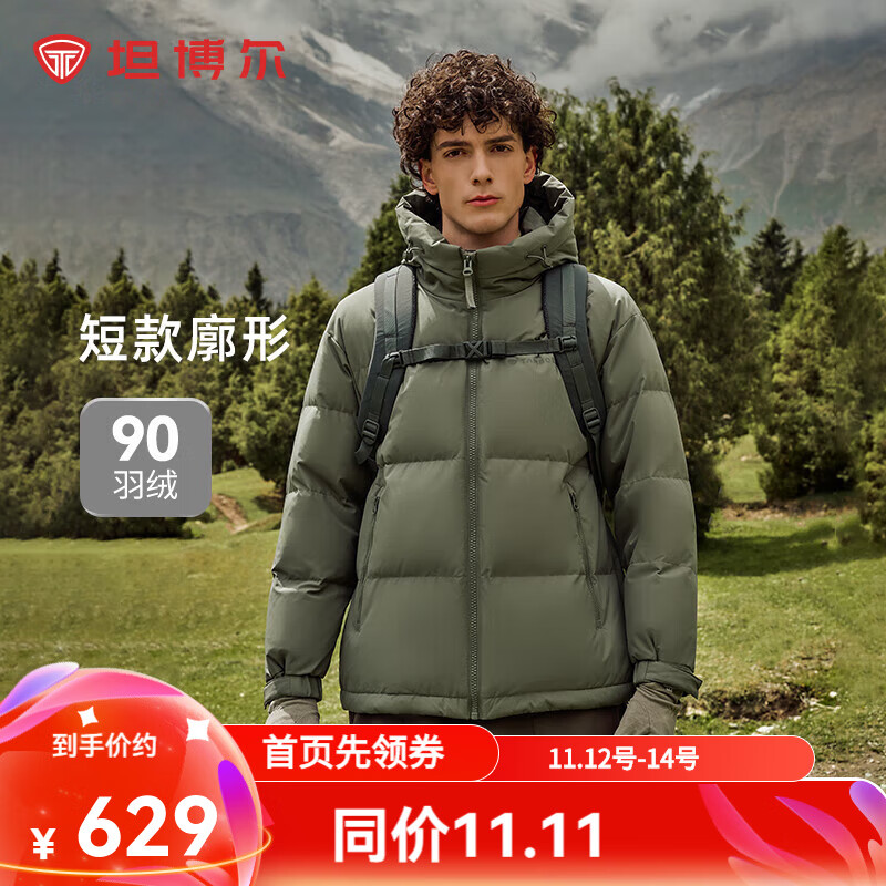坦博尔【店长推荐】羽绒服男短款宽松休闲90绒连帽外套潮冬装TAF530353J 深铬绿 2XL (185)