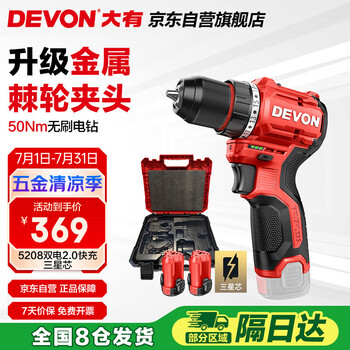 大有(Devon)12V无刷锂电钻手电钻充电钻便携手转螺丝刀5208双电2.0三星芯快充