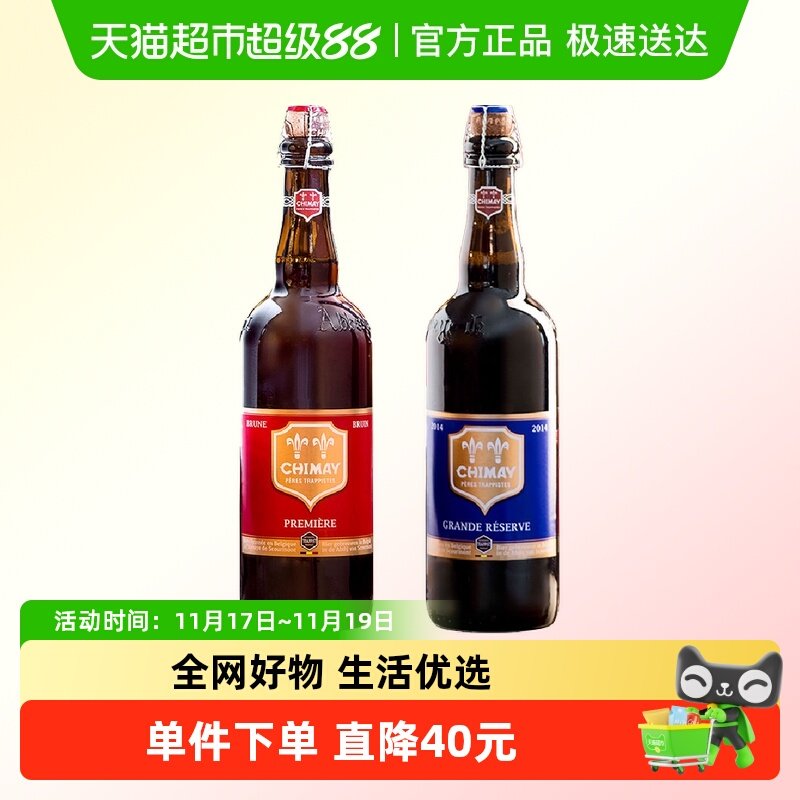 【进口】比利时智美CHIMAY红帽/蓝帽修道院精酿啤酒750mlx2瓶装