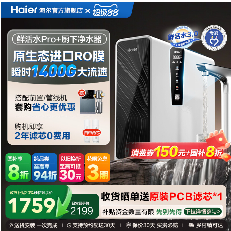 ¡¾Õþ¸®²¹Ìù¡¿º£¶ûÏÊ»îË®pro+1200G¾»Ë®Æ÷¼ÒÓÃÖ±Òû³øÎÀ¾»Òû»úR881