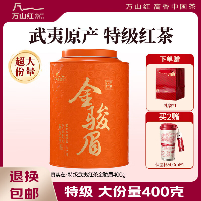 万山红 红茶 真实在 武夷山金骏眉 特级 400g 罐装 茶叶自己喝 送礼