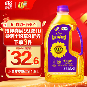 营养家 食用油 黄金小黑葵 葵花仁油1.8L 物理压榨一级 中粮福临门出品