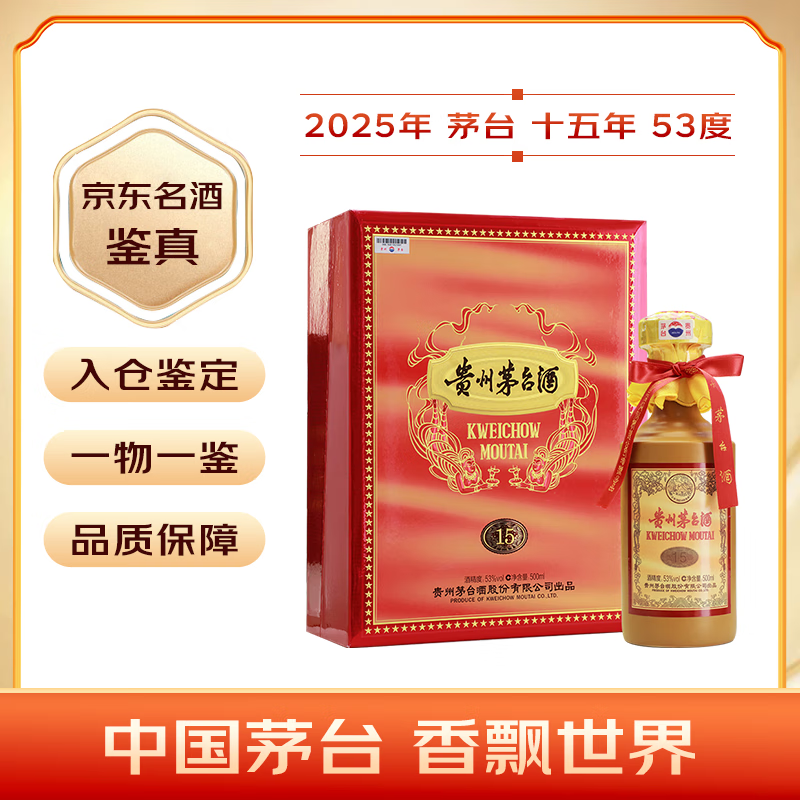 茅台(MOUTAI) 2025年15年 酱香型白酒 53度 500ml 礼盒装【名酒鉴真】