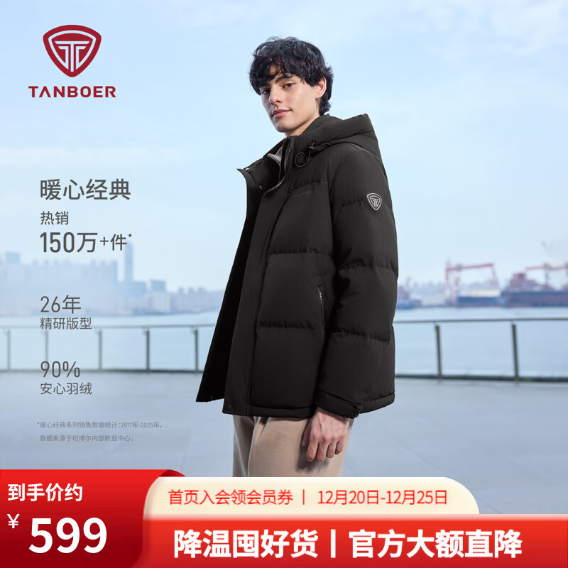 坦博尔2025冬季新款高领连帽羽绒服男短款防风保暖时尚羽绒外套5550325D 黑色 S