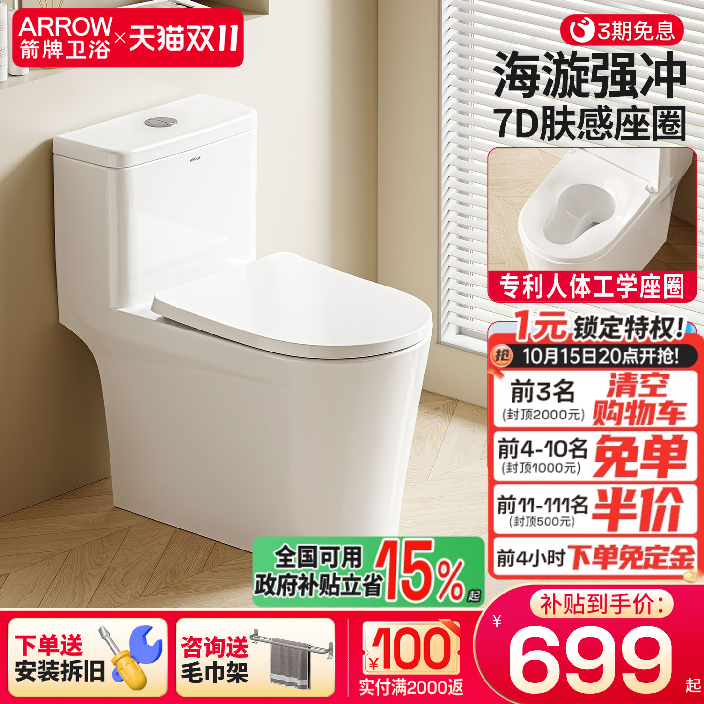 【马桶政府补贴】箭牌坐便器抽水马桶家用防臭防溅喷射虹吸大冲力