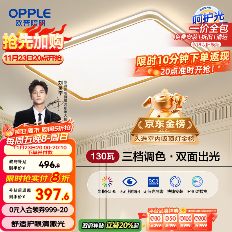 欧普(OPPLE)吸顶灯护眼高显色客厅大灯可调光LED照明灯具灯饰简约品见 包安装