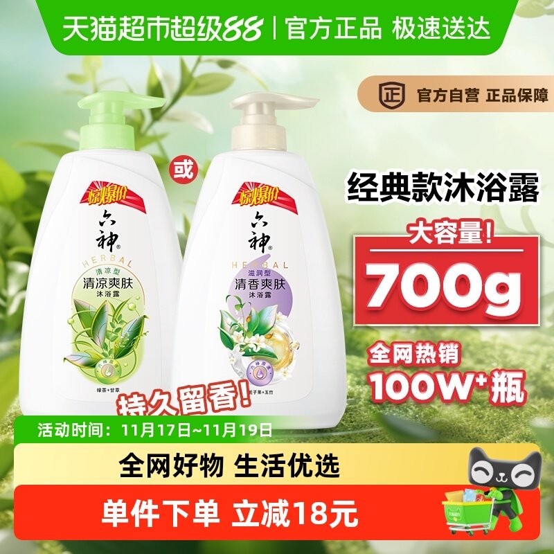 六神经典款沐浴露栀子味或绿茶味长久留香清爽保湿肌肤沐浴乳