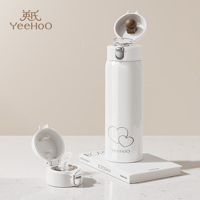 英氏(YEEHOO)爱心保温杯316不锈钢儿童吸管杯孕妇保温杯学生水壶水杯外出杯 同心洁白保温杯 480ml