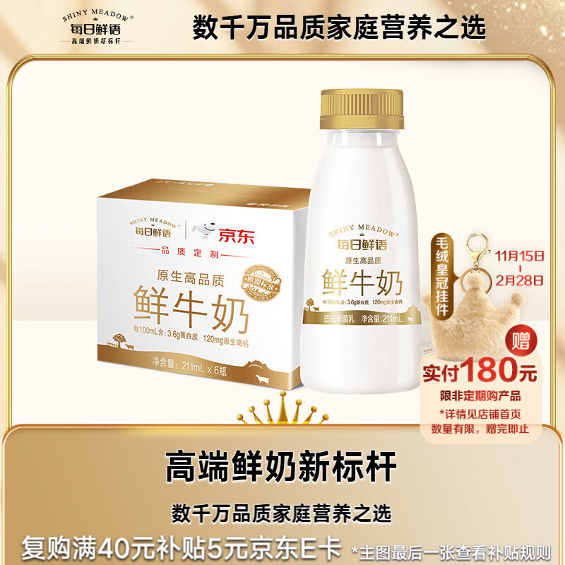每日鲜语鲜牛奶 高品质原生低温牛奶 巴氏杀菌乳 3.6g 211ml*6