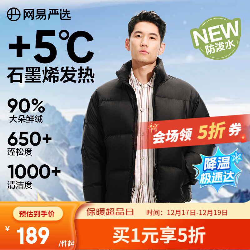 网易严选25新品90鸭绒超蓬羽绒服休闲面包服石墨烯保暖轻量抗菌防泼水 A款25秋冬立领-静谧黑 L
